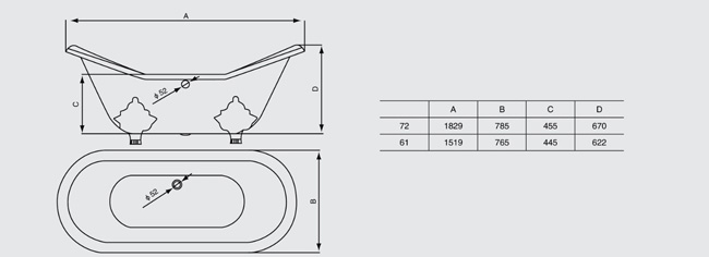 72英寸 1829×785×455×670;61英寸 1519×765×445×622 |